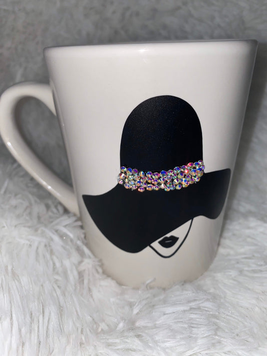Bling Afro Praying Woman Mug: Rhinestone Christian Gift, 16 oz
