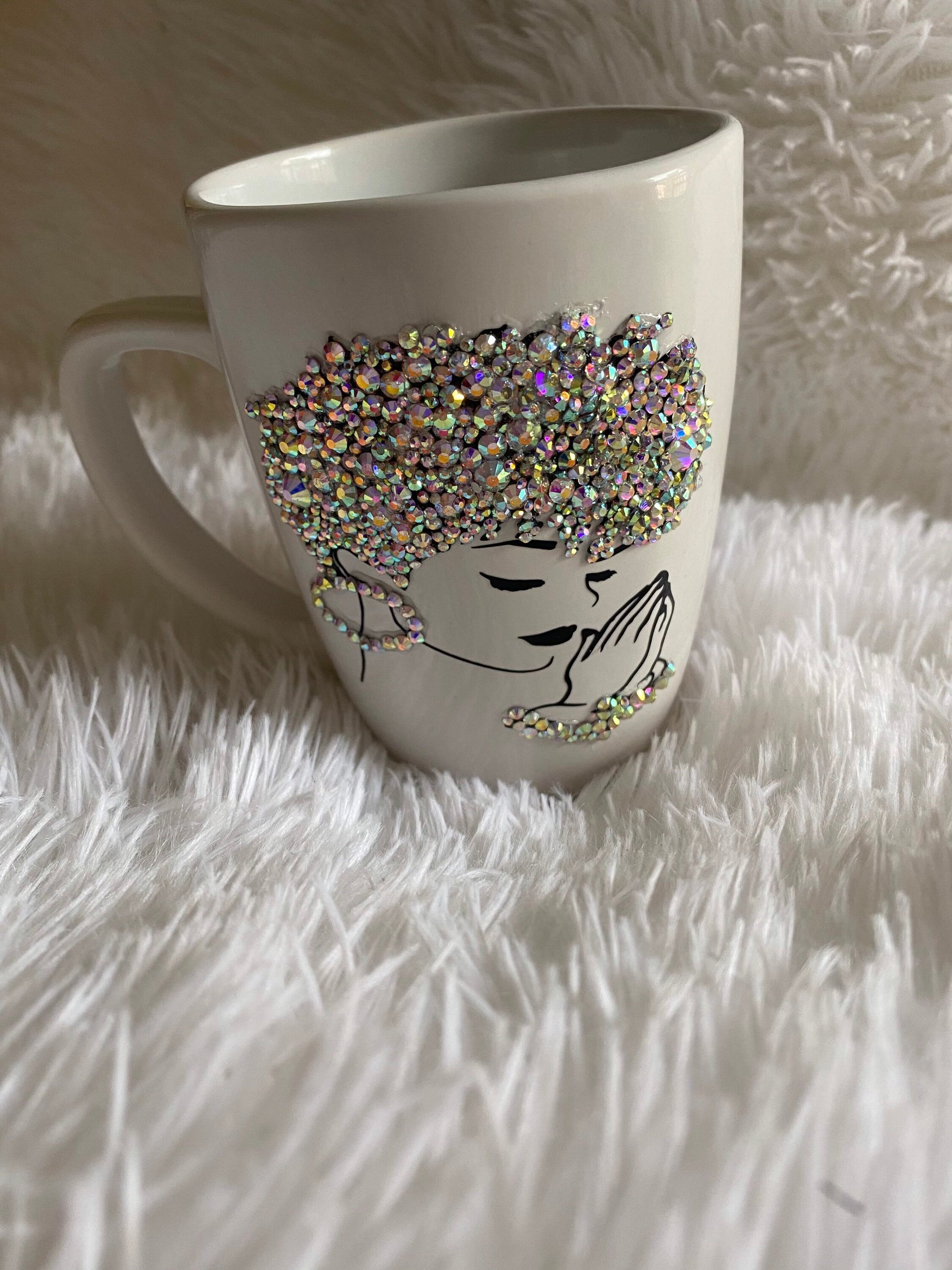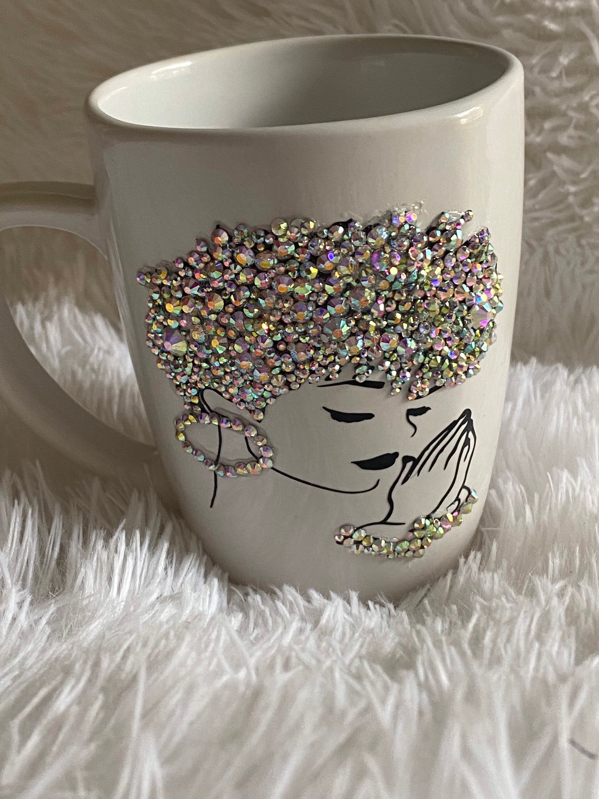 Bling Praying Woman Christian Bling Coffee Mug. 12oz Mug. Praying Woman Bling Mug Christian Mug. Blessed Woman. Bling Praying Woman. Personalized Gift.