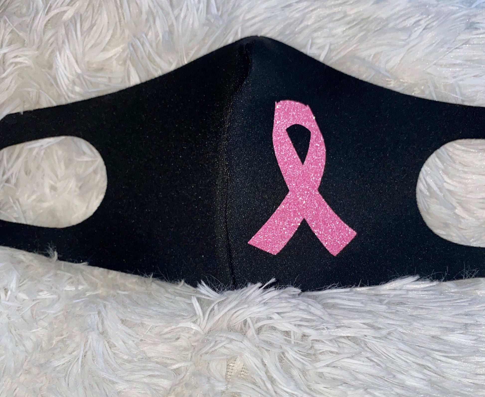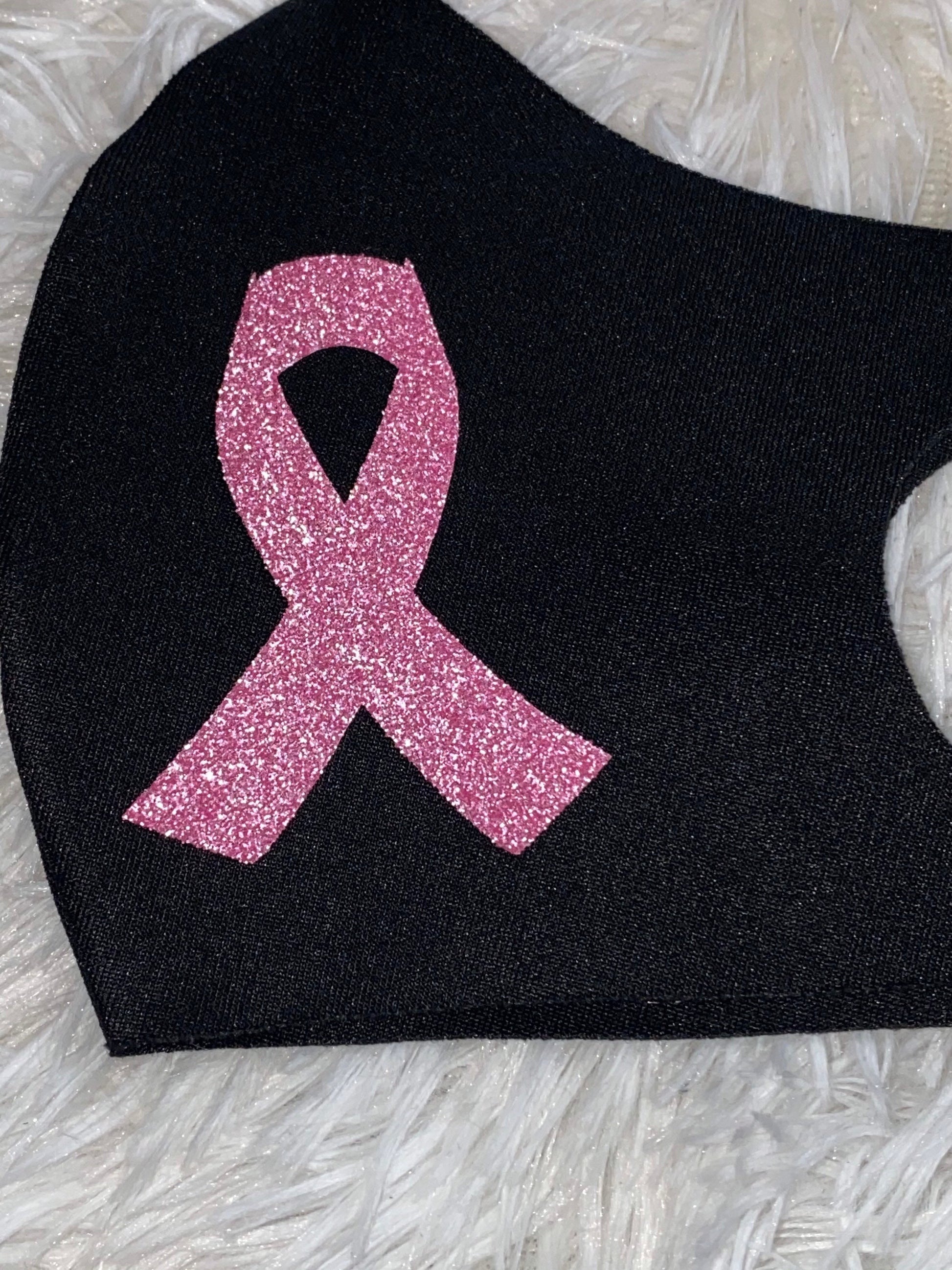 Breast Cancer Awareness Face Mask: Reusable Cotton with Pink Glitter Ribbon