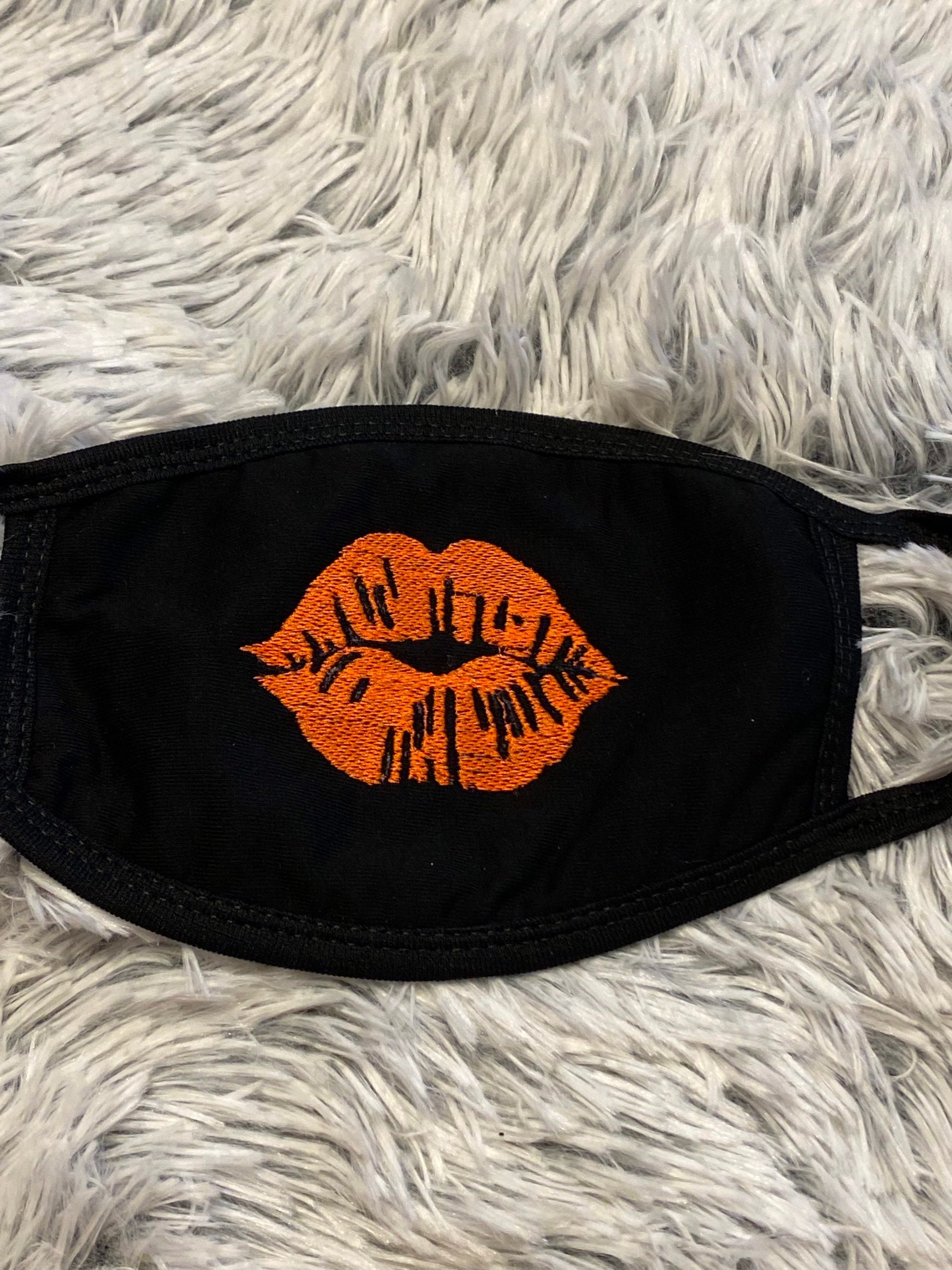 Embroidered Lipstick Lips Face Mask: Reusable Cotton Mask