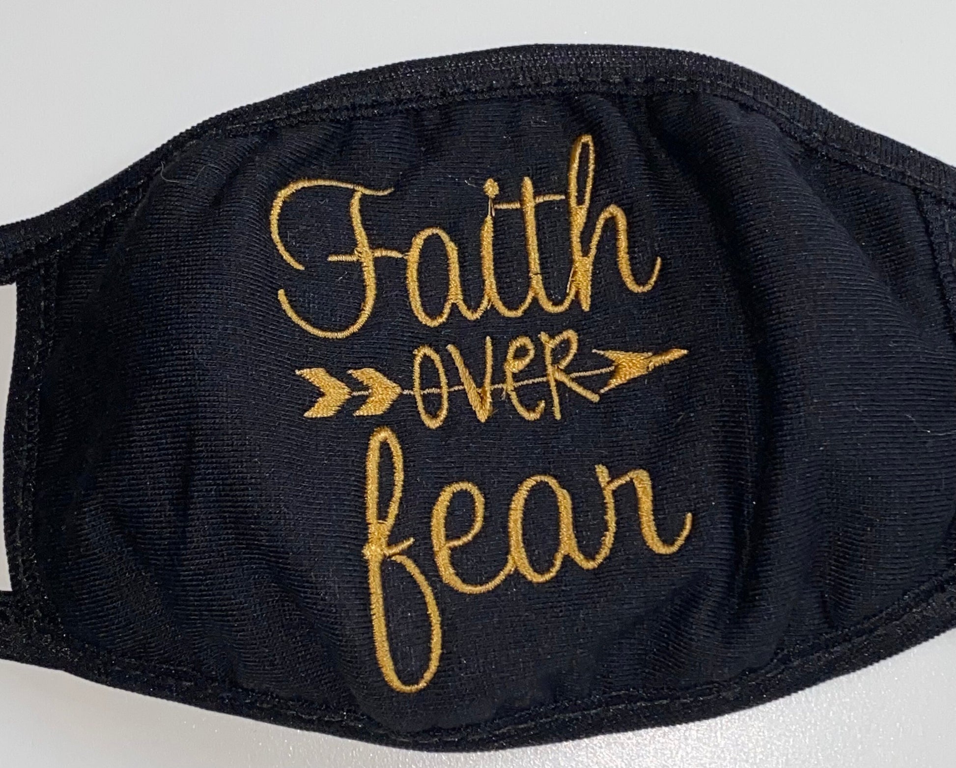 Faith Over Fear Embroidered Face Mask: Christian Reusable Mask
