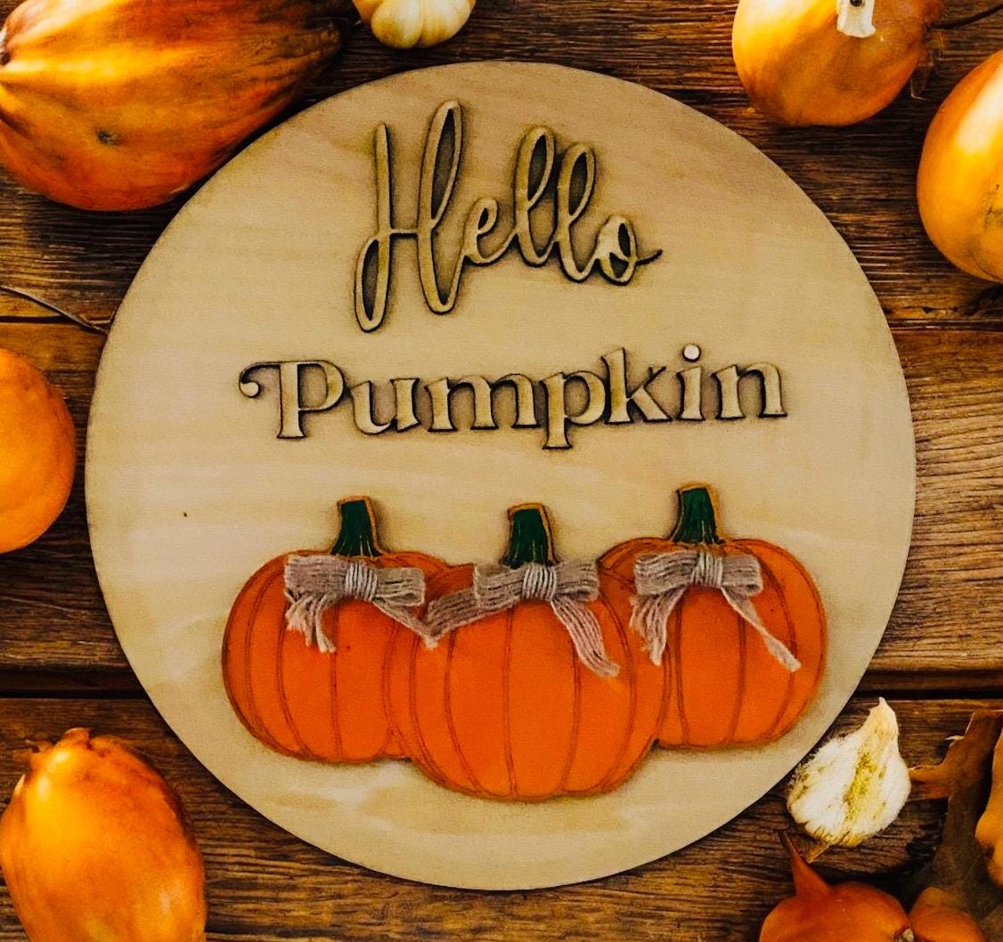 "Hello Pumpkin." Made from bass wood, this plaque showcases intricate detailing, ensuring a delightful addition to any space.