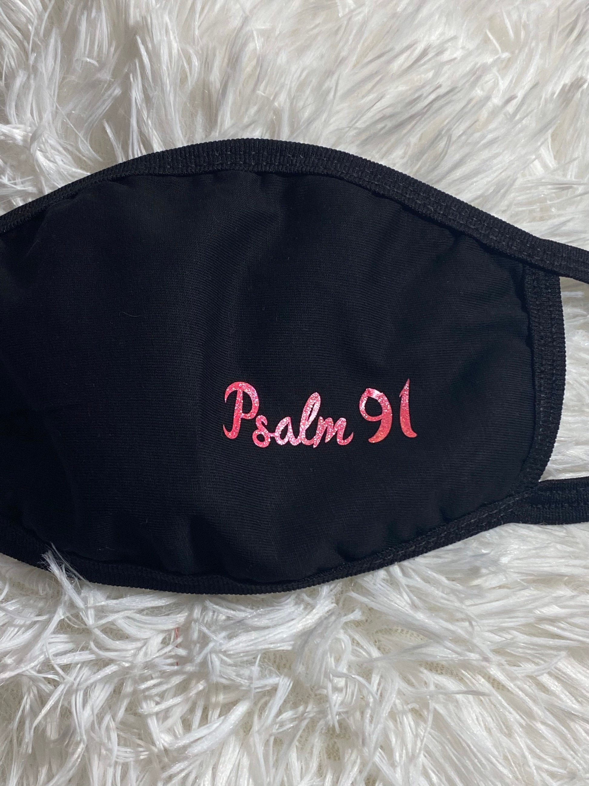 Psalm 91 Face Mask: Pink Glitter Letter, Two Layer Cotton