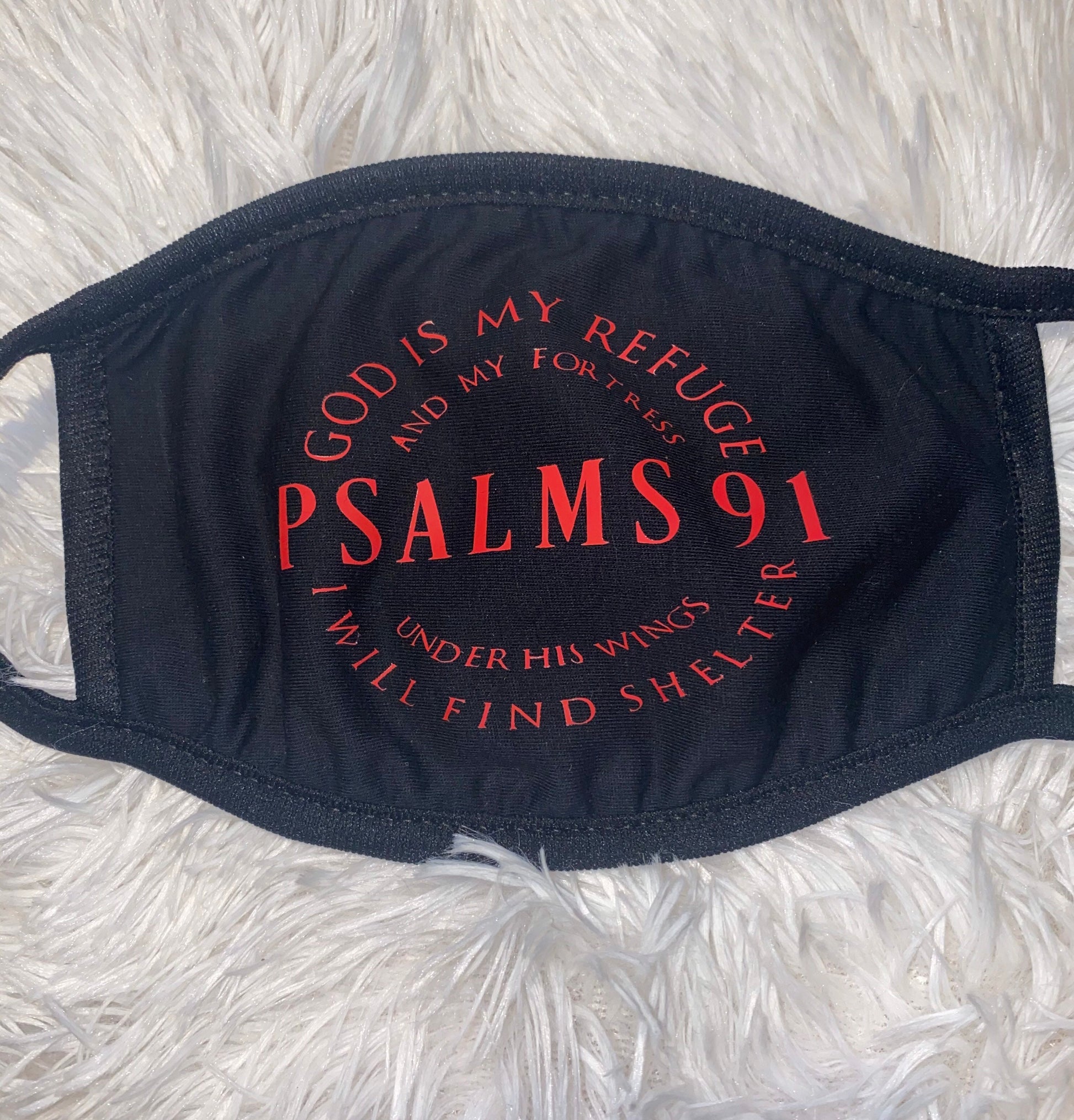 Christian Face Mask. Unisex Face Mask. Psalm 91. Thin Two Layer Cotton Washable Face Mask. Reusable Face Mask. Thin Cotton Mask. Summer Cotton Face Mask. Psalms 91. Red Color Wording.