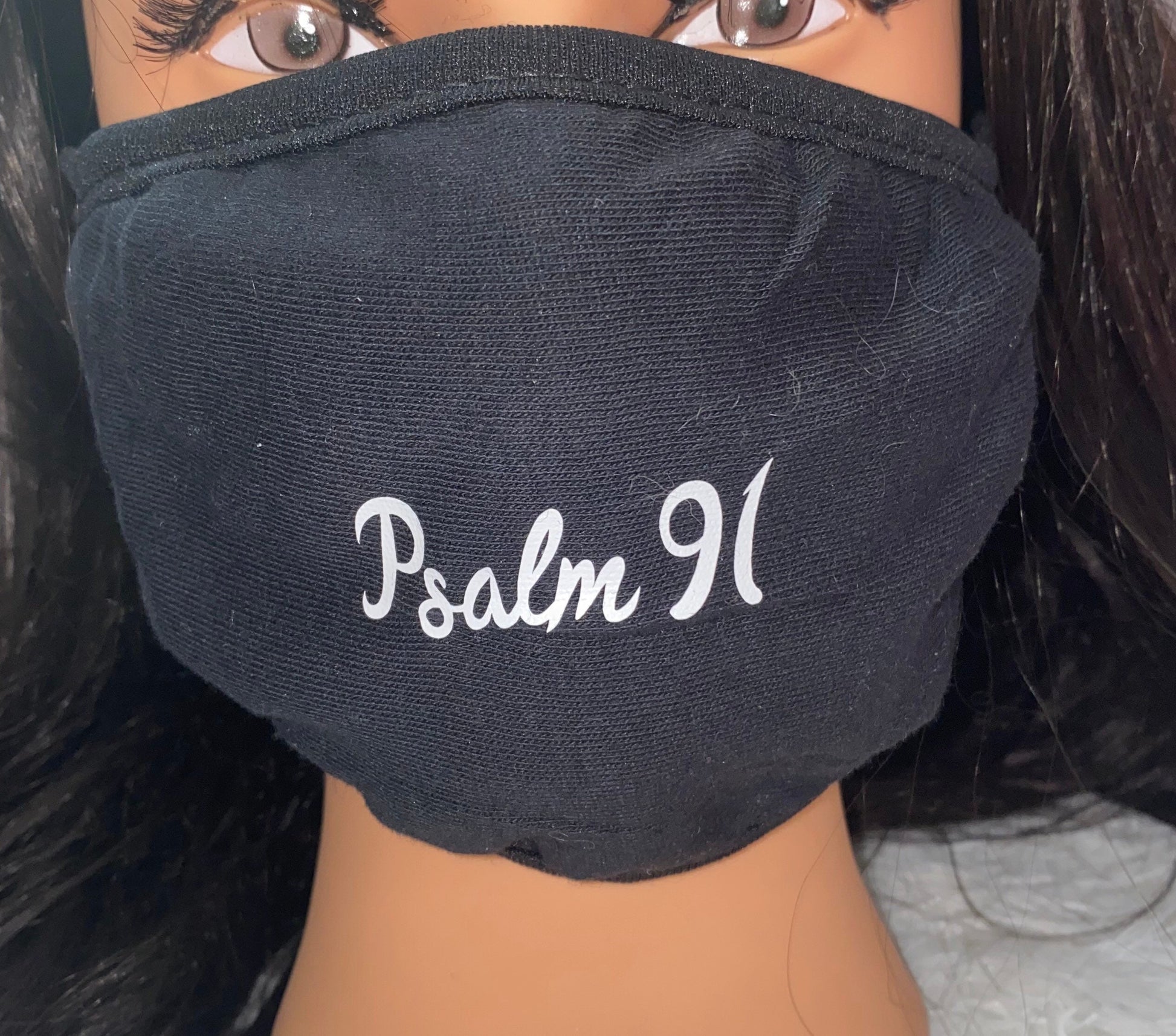 Psalm 91 Face Mask: Unisex Black Cotton, Reusable