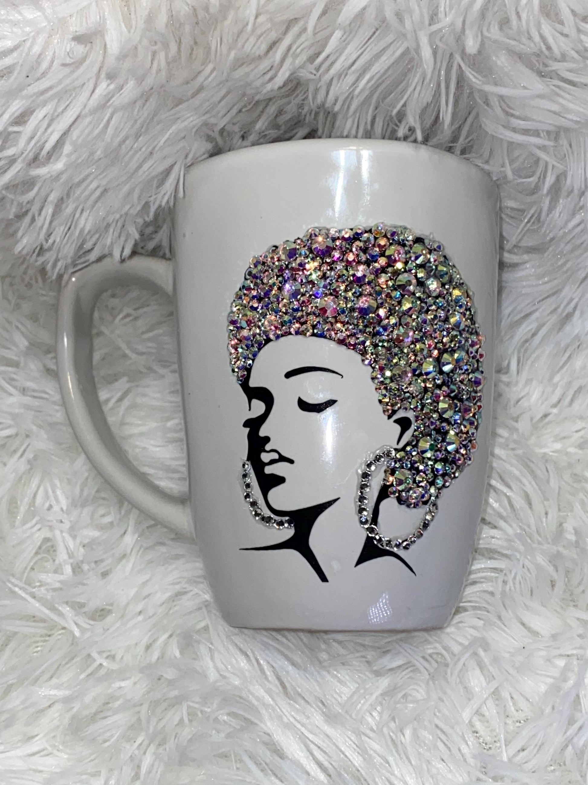 Rhinestone Afro Woman Mug: Personalized Bling Gift, 12oz