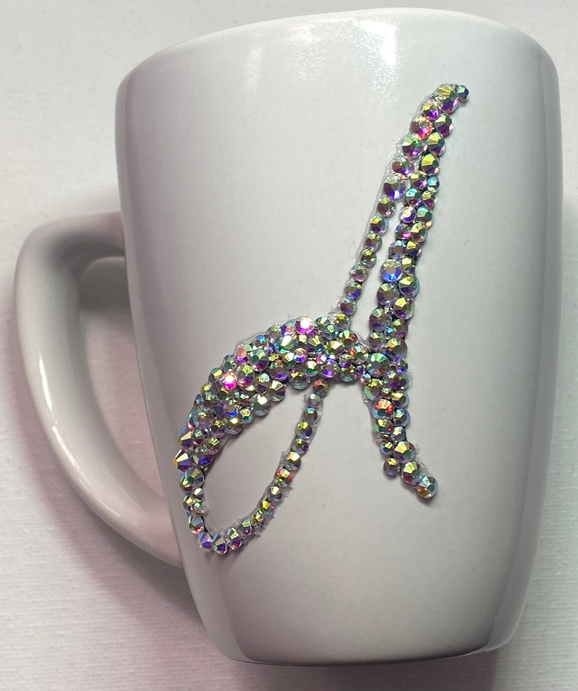 Rhinestoned Initial Coffee Mug. 12oz Mug.